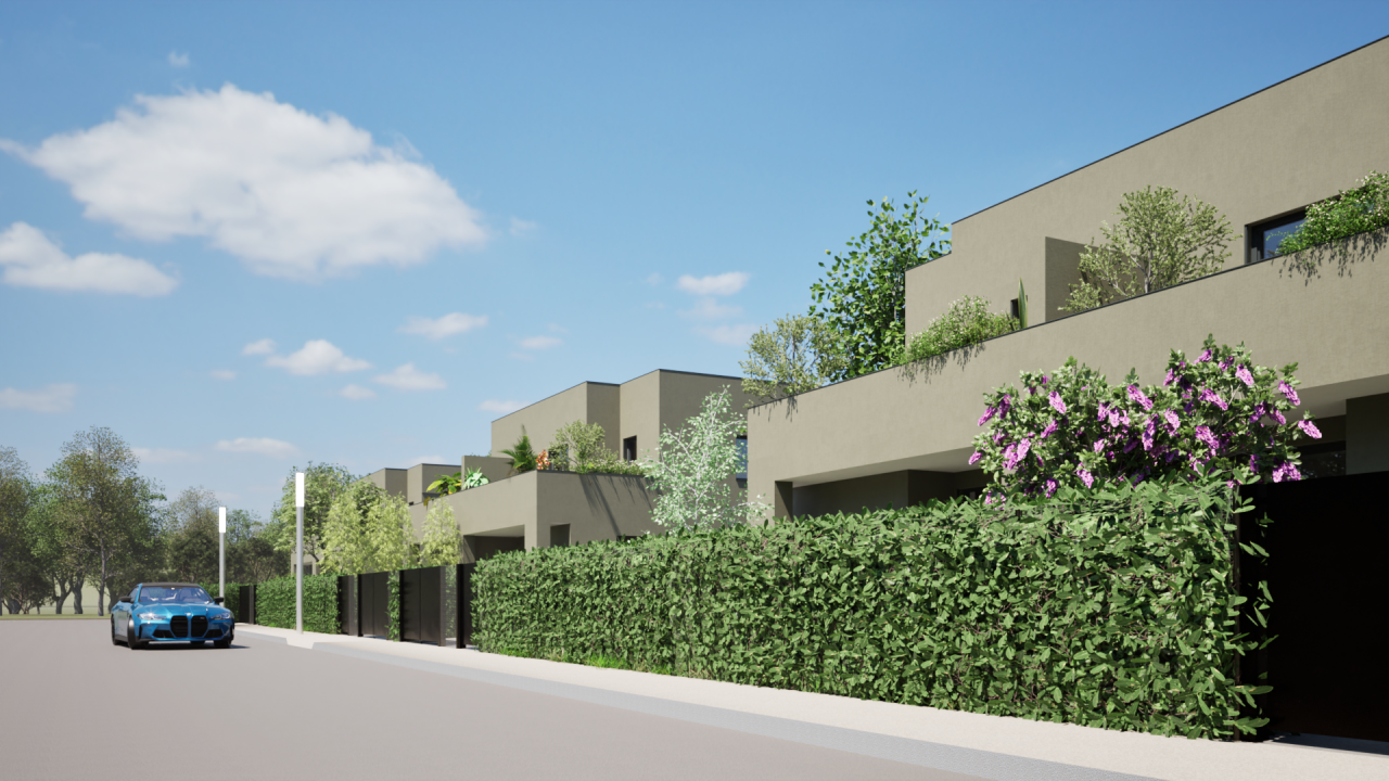 Bifamiliari con ampi spazi e giardini fino a 300 mq.. Lontano dal traffico, ma vicino a tutti i punti di interesse.