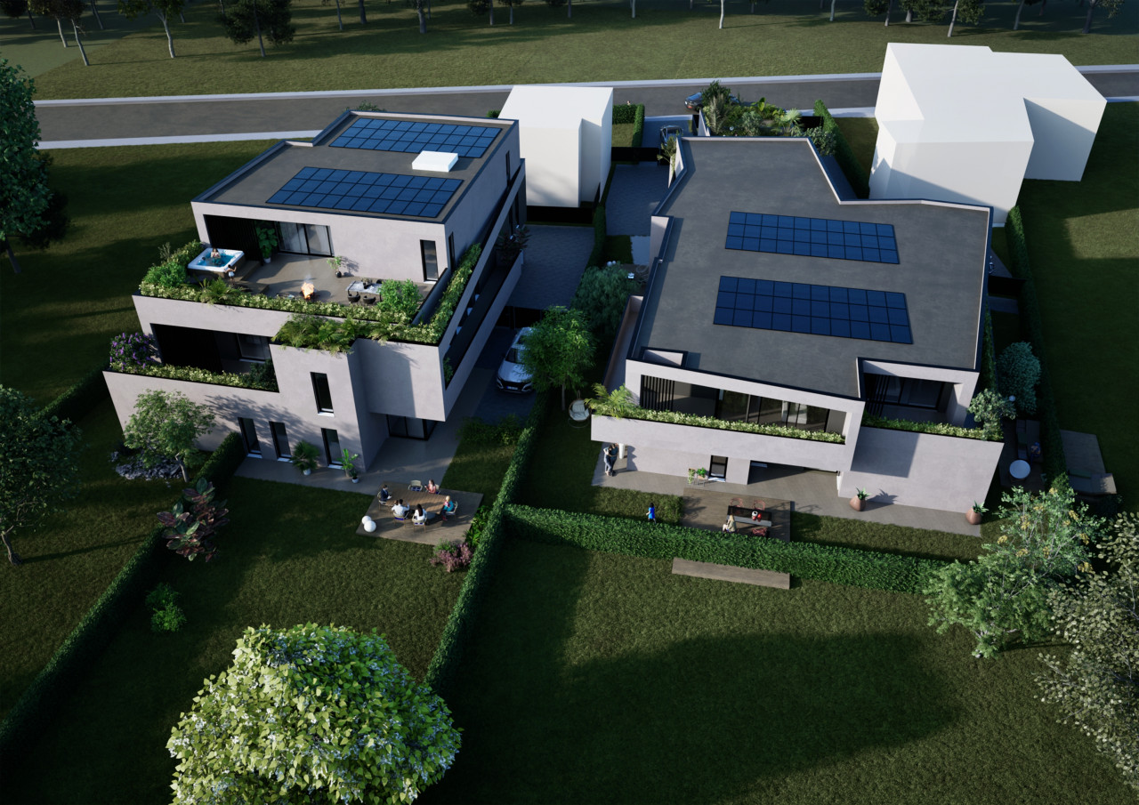 Bifamiliari con ampi spazi e giardini fino a 300 mq.. Lontano dal traffico, ma vicino a tutti i punti di interesse.