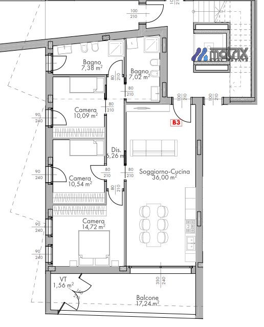 Appartamento Dolo Ve, €. 257.000, 3 camere 2 bagni Nuova costruzione. NO GAS, cottura ad induzione.