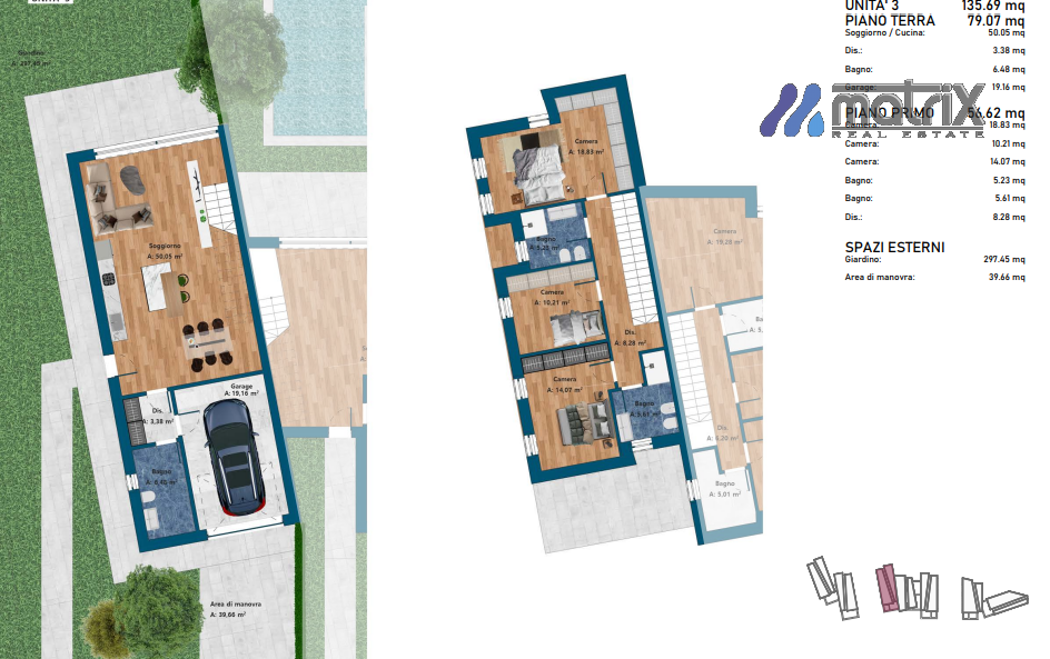 - 2 bagni di 5.00 e 5.20 mq.