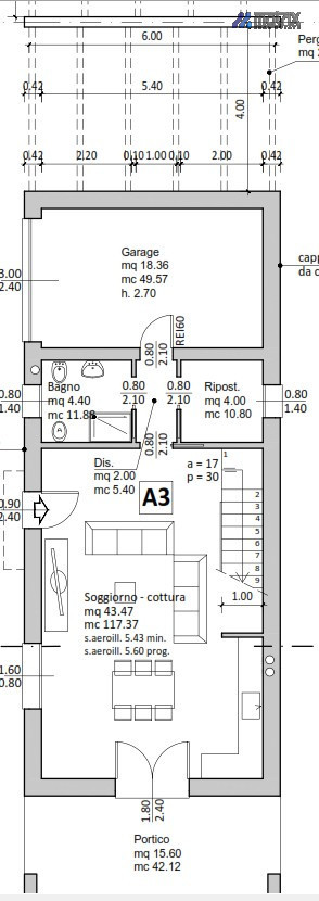 - ingresso soggiorno con possibilità di cucina separata di , con ampie vetrate scorrevoli che consente l'accesso ad un portico