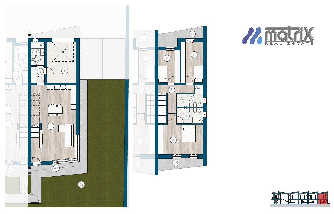 Le Villette si sviluppano su due piani fuori terra e si compongono;