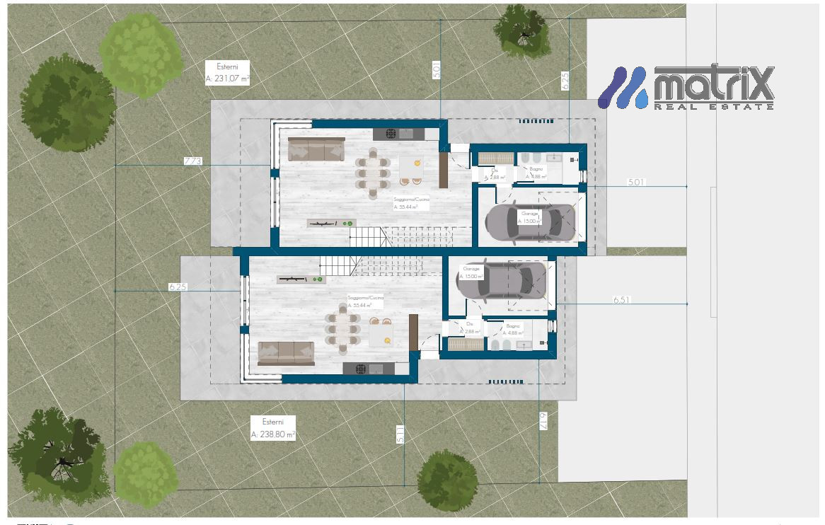 - 2 bagno ciascuno di 6,00 mq.