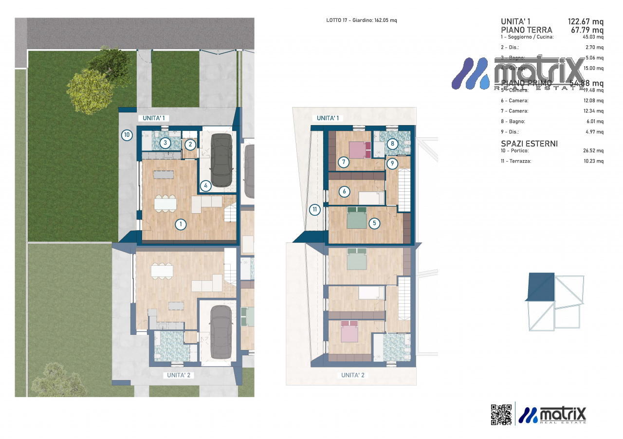 Splendida Trifamiliare su due livelli , in stile moderno, dagli ampi spazi, si compone di: